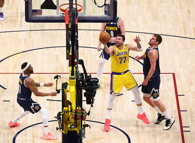 从比赛一开始,掘金就在首节打出一波32-22的攻击波,确立了两位数的领先优势。尽管湖人一直没有放弃,并且在第三节将双方的分差缩小到10分以内。但是在第三节,球队始终无法打出一波流将比分反超。湖人落后7分进入到末节。
