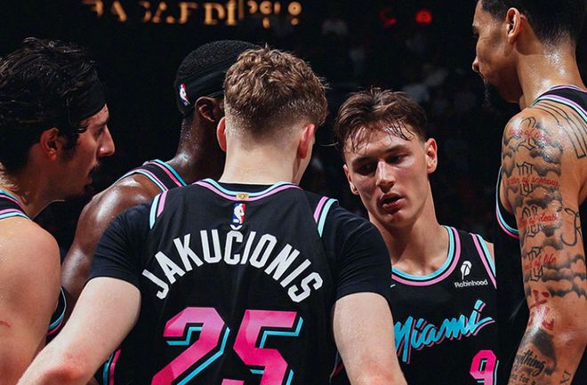 热火:哈克斯32分3板4助、韦尔24分19板2助7帽、维金斯21分2板3助、拉松16分7板4助、阿德巴约14分9板7助、亚库乔尼斯14分3板9助2帽、米切尔12分4板6助。