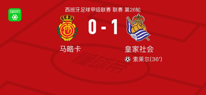 皇家社会1-0马略卡,索莱尔制胜