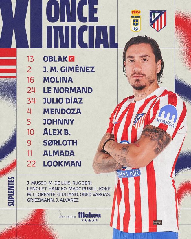 马竞客战皇家奥维耶多:卢克曼搭档阿尔马达,瑟洛特出战