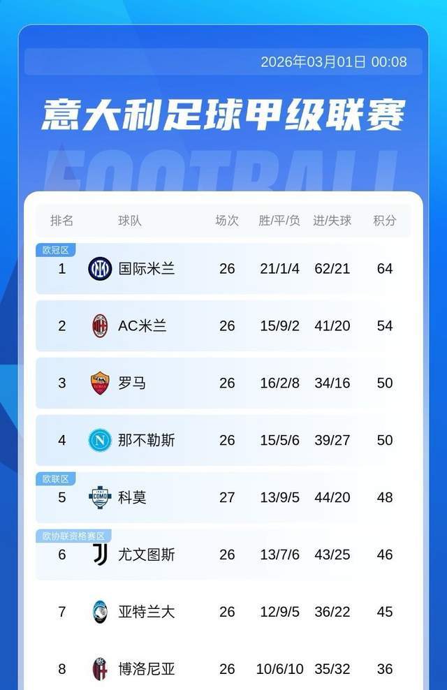 北京时间2月28日22:00,2025-26赛季意甲第27轮迎来了一场焦点大战:大黑马科莫主场迎战降级区球队莱切。