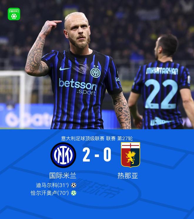 剑南春|国米2-0热那亚,迪马尔科凌空斩,恰尔汗奥卢点射