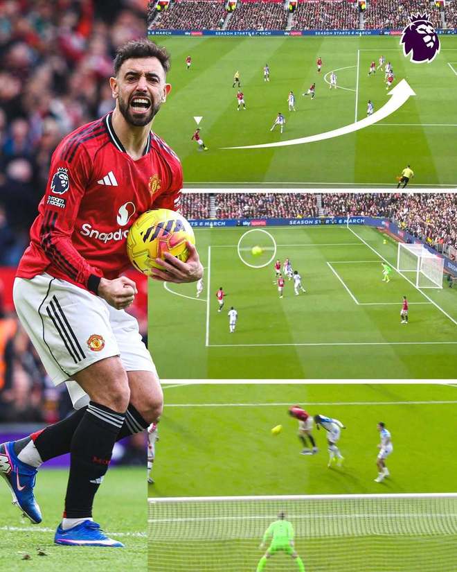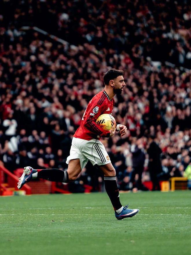 第57分钟,B费操刀主罚命中,曼联扳平比分,1-1!