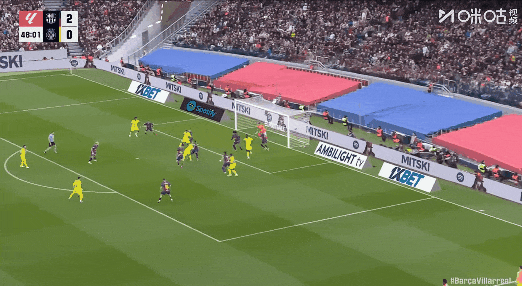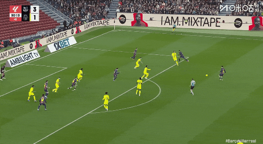 第68分钟,佩德里上帝视角直塞,亚马尔轻松破门上演帽子戏法,巴萨3比1黄潜!