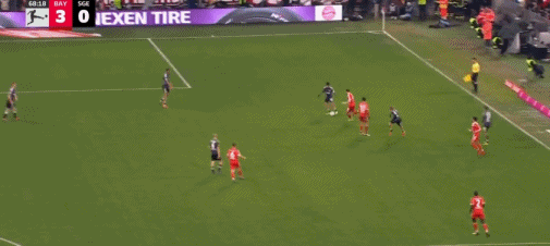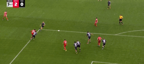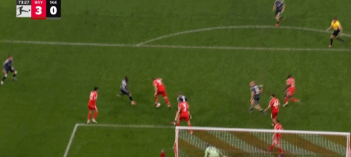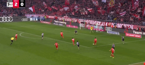 第16分钟,帕夫洛维奇抽射,桑托斯扑救失误,拜仁1-0法兰克福