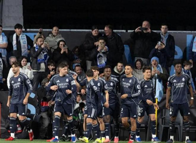 皇马本场遭遇了严重的伤病危机,姆巴佩、贝林厄姆和罗德里戈三大主力全部因伤缺阵,进攻端的火力大打折扣。为了拿下这场关键比赛,主帅阿韦洛亚排出了442阵型,尽遣所能派出最强阵容:维尼修斯和卜拉欣-迪亚斯搭档双前锋,承担起进球重任;中场由蒂亚戈-皮塔奇、楚阿梅尼、居莱尔和巴尔韦德四人组成,攻防兼顾、衔接有序;后防线则由费兰-门迪、吕迪格、劳尔-阿森西奥和亚历山大-阿诺德携手镇守,全力阻挡塞尔塔的进攻;门将位置依旧是库尔图瓦,守住球队最后的防线。贡萨洛-加西亚和卡瓦哈尔则坐在替补席待命,随时准备登场支援。