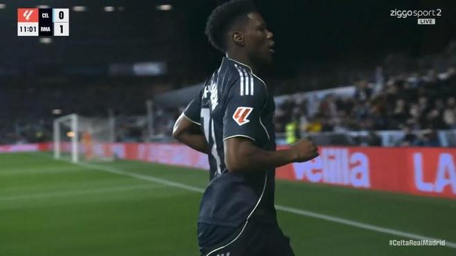 西甲第27轮,皇家马德里客场对阵塞尔塔,上半场楚阿梅尼破门为皇马取得领先,这是楚阿梅尼自2024年4月以来首次在西甲赛场取得进球。
