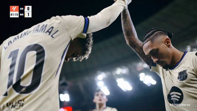 莱万、拉菲尼亚、费尔明三名主力上场,展开全面的攻势。第68分钟,佩德里长传,亚马尔拿球晃过防守球员,直接兜射远角,击中立柱内侧弹进球门,1:0!巴萨终于打破僵局。毕尔巴鄂竞技利用最后的时间,展开全面的反击,两个边路不断的插上,制造了数次攻门的机会,只可惜临门一脚欠缺一些运气,最终全场比赛结束,巴塞罗那一球拿下对手。