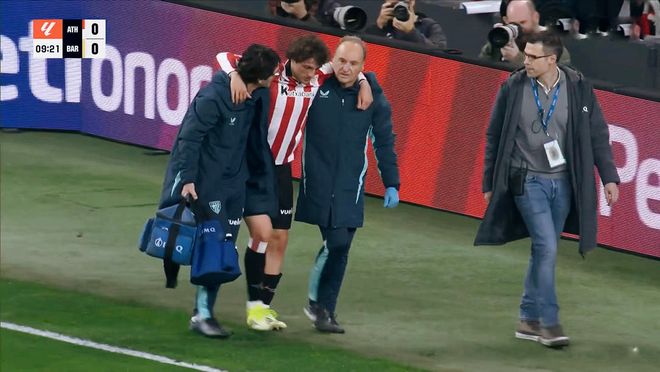 从比赛开始双方便展开了积极的攻势,主场作战的毕尔巴鄂竞技数次打到进攻腹地,而前场的高压逼抢,进一步加剧了巴萨防线紧迫感。但是比赛不到10分钟,无奈戈麦斯不慎扭伤,伤势较重,纳瓦罗紧急替补登场。