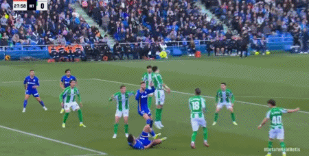 第45+1分钟,阿布卡尔助攻,萨特里亚诺吊射破门,赫塔费2-0贝蒂斯