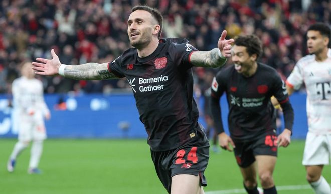 德甲第26轮的一场比赛展开争夺,拜仁做客挑战勒沃库森。拜仁在前25场联赛取得21胜3平1负的逆天战绩。这让拜仁牢牢掌控榜首位置,把其他球队都远远甩在身后,让冠军的归属早早失去悬念。近段时间拜仁的势头很猛,各项赛事取得一波7连胜。在周中的欧冠赛场,拜仁在客场踢疯了,以6-1狂胜亚特兰大,晋级形势一片大好。如今回归联赛,拜仁面对的是联赛排名第6的勒沃库森。结果,拜仁艰难拿到一场平局。