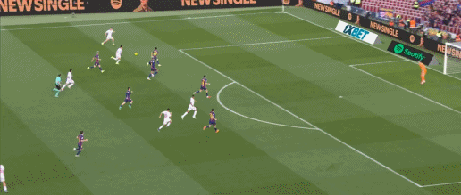 第38分钟,贝尔纳尔传球发生折射,奥尔莫破门,巴萨3-0塞维利亚