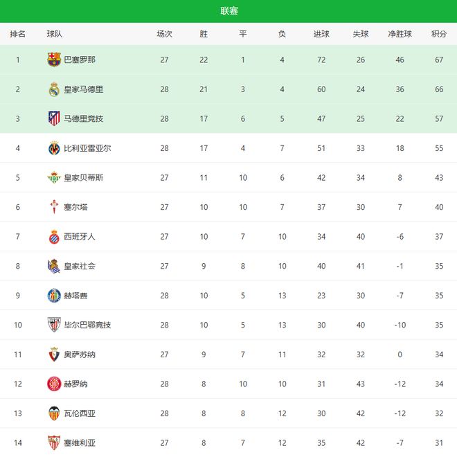 随着皇马4-1大胜+马竞1-0!西甲最新积分榜:巴萨仅领先1分