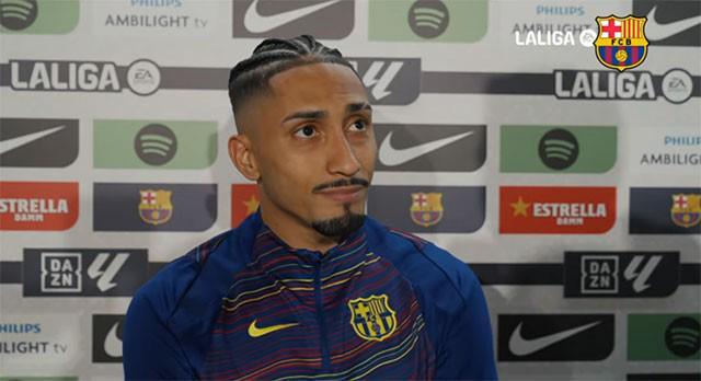 用帽子戏法帮助球队在联赛主场5-2大胜塞维利亚后,巴萨前锋拉菲尼亚当选全场最佳,赛后他接受了DAZN的采访。