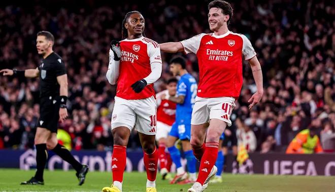 本轮唯一表现还算正常的英超球队,就是联赛的领头羊阿森纳。主场面对德甲劲旅勒沃库森,阿森纳整场比赛都没有给对手太多机会。上半场比赛,埃泽为球队打入一记精彩世界波,让枪手得以带着1球的优势回到更衣室。易边再战,另外一名中场球员赖斯也用一脚精彩的远射,洞穿了勒沃库森的大门。最终阿森纳以2-0战胜了勒沃库森,总比分3-1淘汰对手晋级八强,算是为英超挽回了一些颜面。