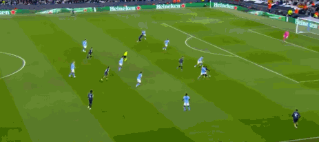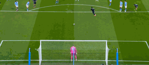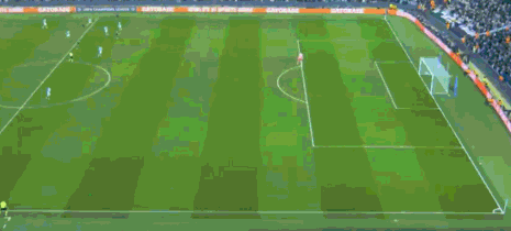 第39分钟,居莱尔主罚任意球直接打门,皮球击中人墙飞出底线
