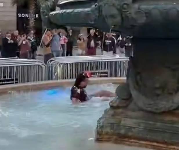 大战在即,纽卡球迷在巴塞罗那街头开大脚、喷泉池里“泡澡”