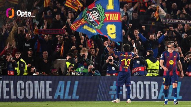 欧冠单轮淘汰赛进2粒点球,亚马尔成为继梅西之后巴萨第二人