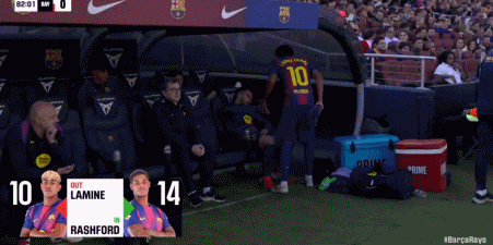 第82分钟,亚马尔被换下,拉什福德替补登场