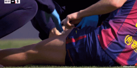 第52分钟,费尔明出现受伤状况,接受队医治疗