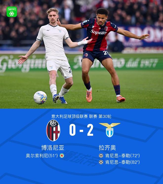 博洛尼亚0-2拉齐奥,泰勒破门,奥尔索利尼失点